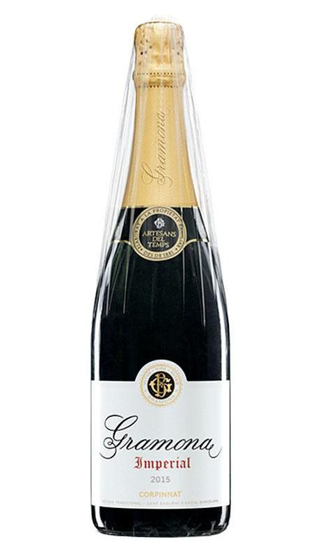 Gramona Imperial, Vino espumoso, 50 meses en rima. Este espumoso elegante y versátil nace en las viñas del Penedès, bajo prácticas biodinámicas. Variedades 56% xarel·lo, 30% macabeu, 10% parellada, 4% chardonnay.